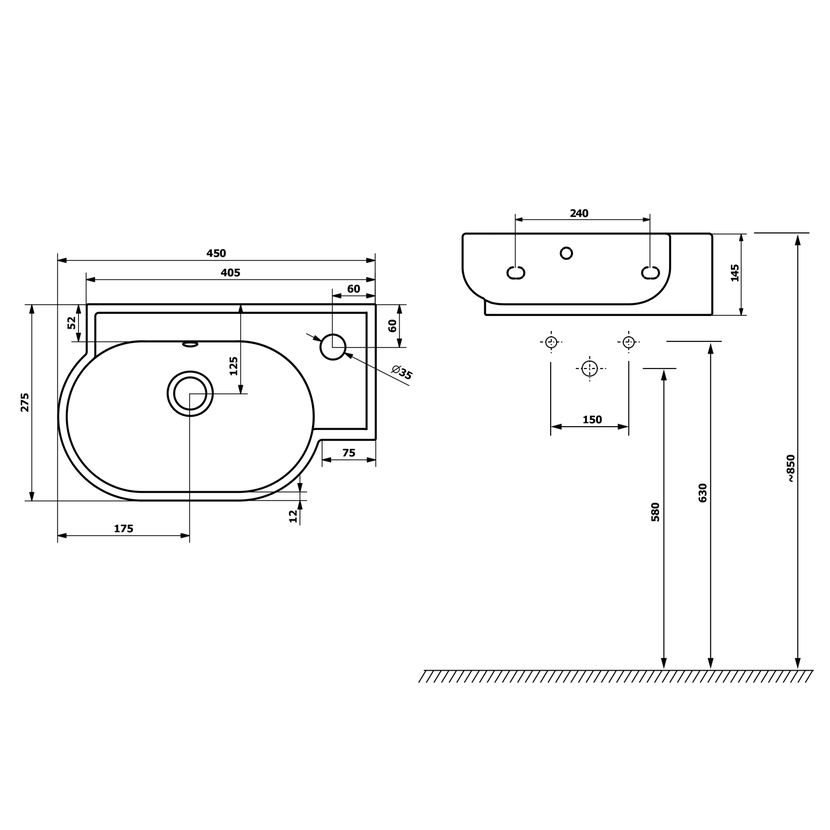 Parametry produktu YUMO keramické umývátko rohové 45x28cm, bílá