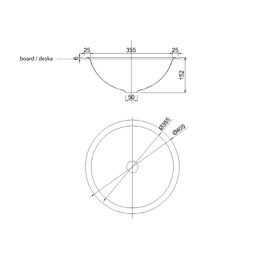 Parametry produktu  Zápustné umyvadlo nerezové, průměr 405mm
