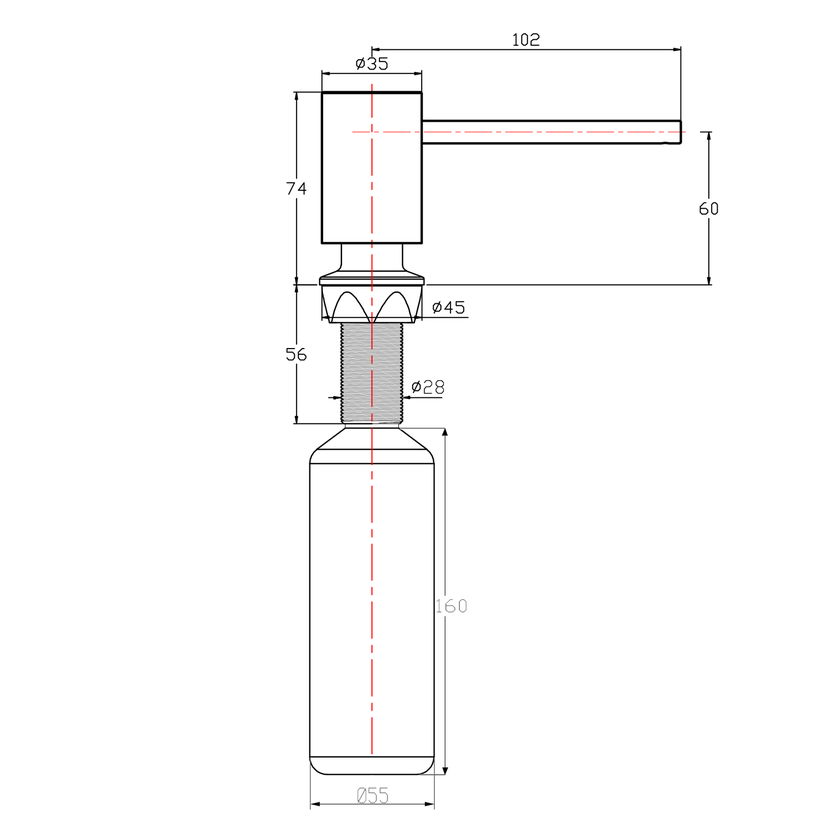 Parametry produktu  Zápustný dávkovač mýdla, kulatý, nerez mat