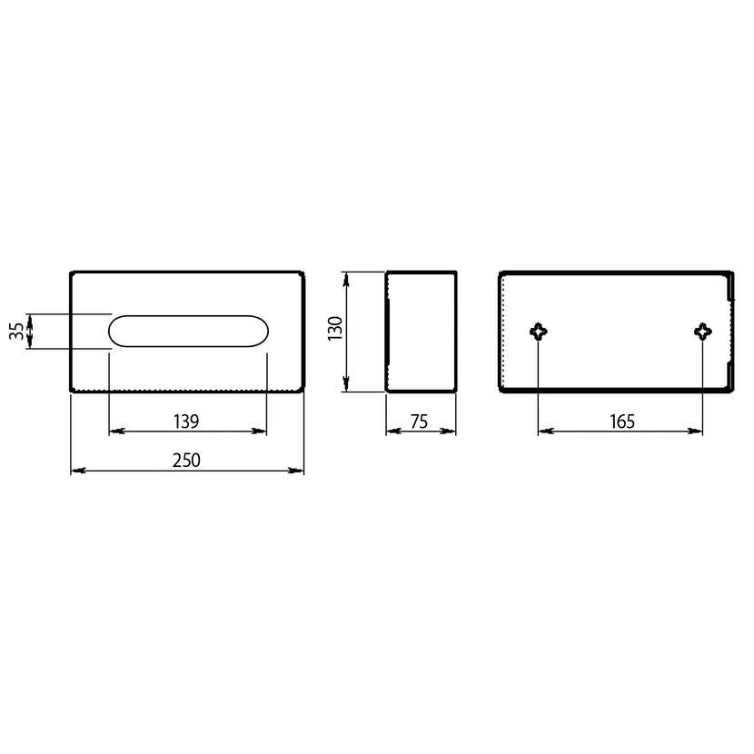 Parametry produktu  Zásobník na papírové kapesníky závěsný, 250x75x130 mm, nerez mat