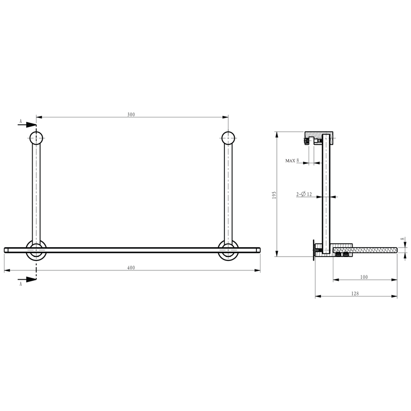 Parametry produktu  Závěsná skleněná polička na sprchovou zástěnu 400x180x125mm, chrom
