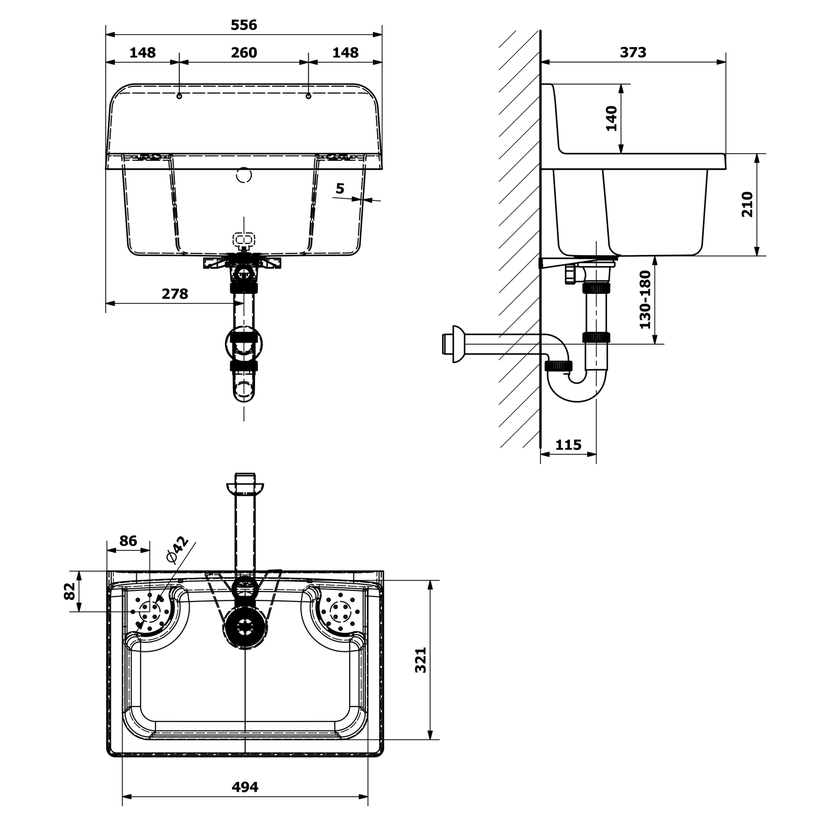 Parametry produktu  Závěsná výlevka 55x37cm, plast, bílá