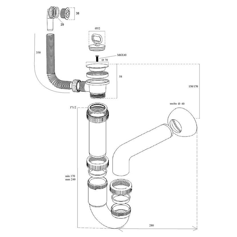 Balení obsahujeSifon, Přepadová souprava