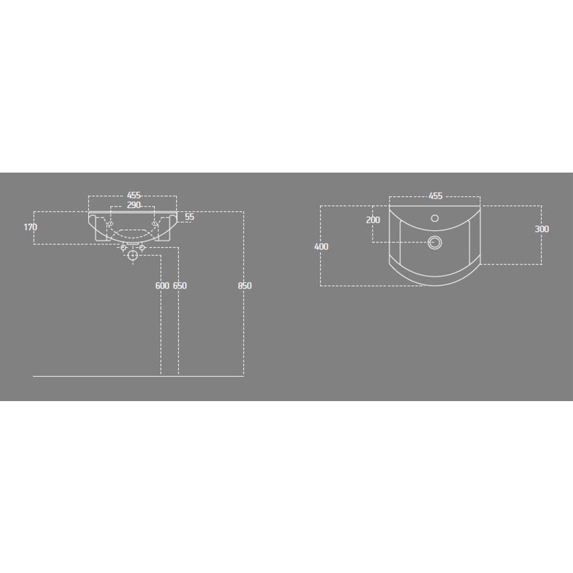 Parametry produktu  ZERO 45 keramické umyvadlo nábytkové 45,5x40cm, bílá