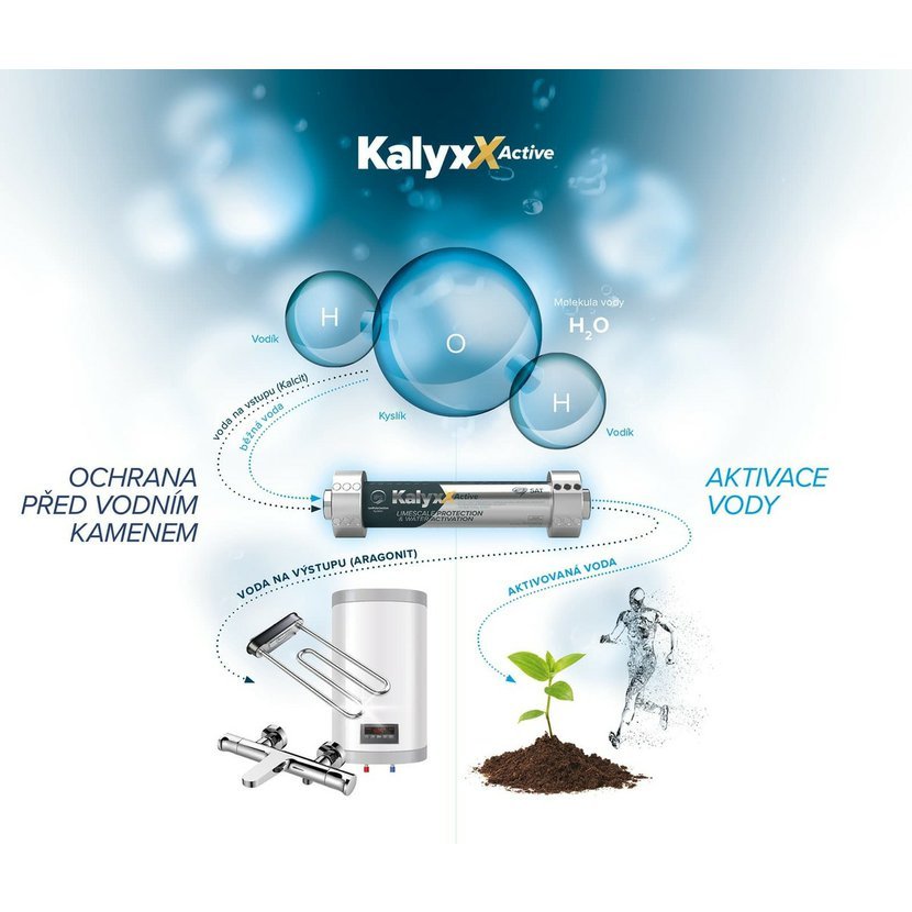 - snižuje usazování vodního kamene cca o 90%, KalyxX Blue line či Red line snižují tvorbu vodního kamene o cca 76%