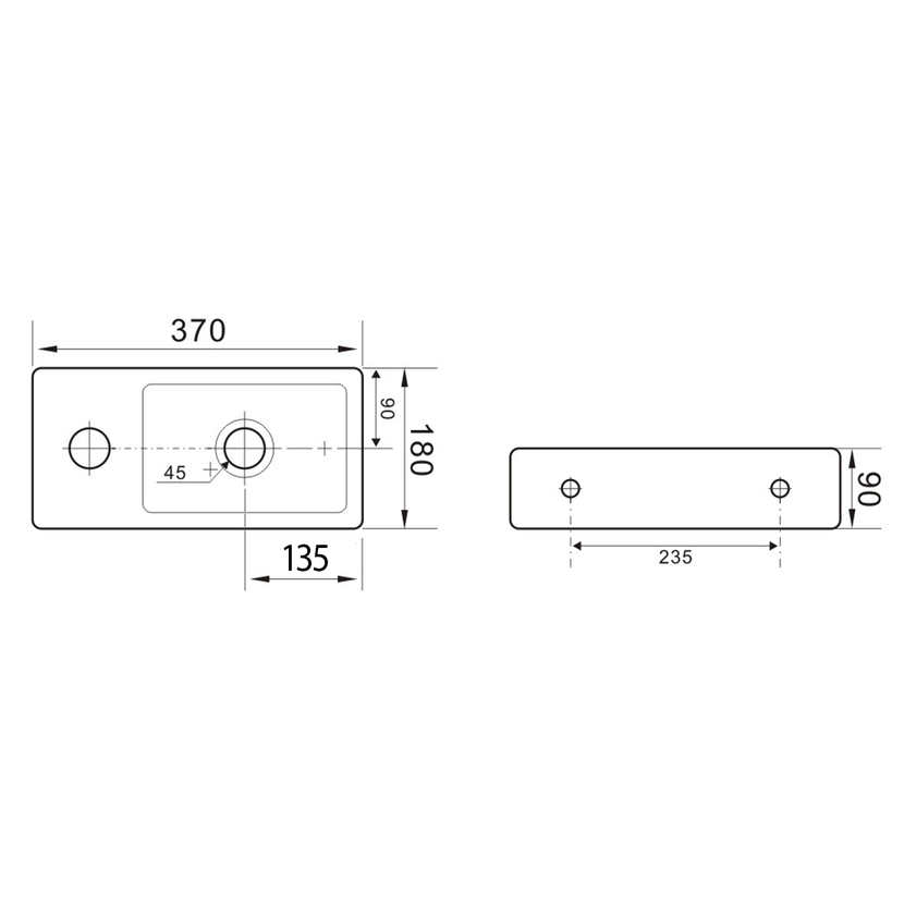 Parametry produktu ZOE keramické umývátko 37x18cm, otvor pro baterii vlevo, bílá
