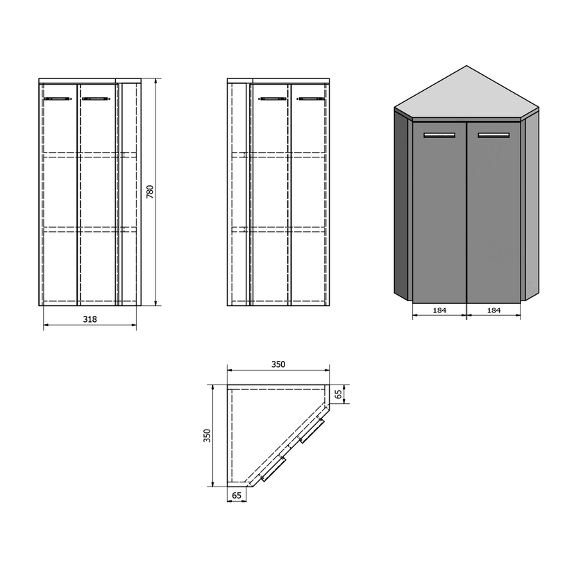 Parametry produktu  ZOJA/KERAMIA FRESH skříňka rohová 35x78x35cm, bílá