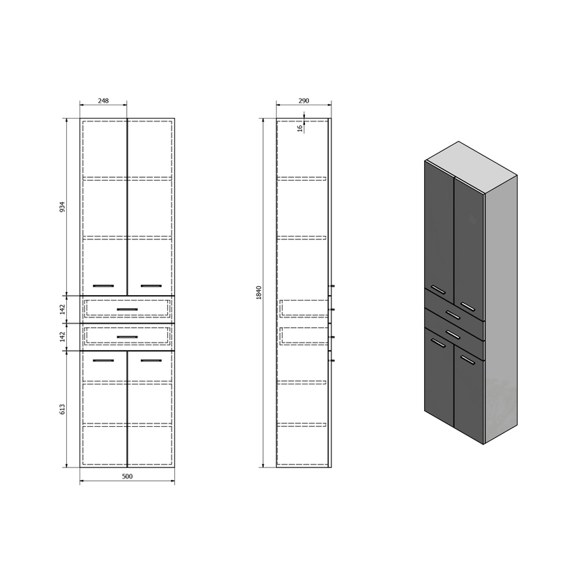 Parametry produktu ZOJA/KERAMIA FRESH skříňka vysoká se zásuvkami 50x184x29cm, bílá