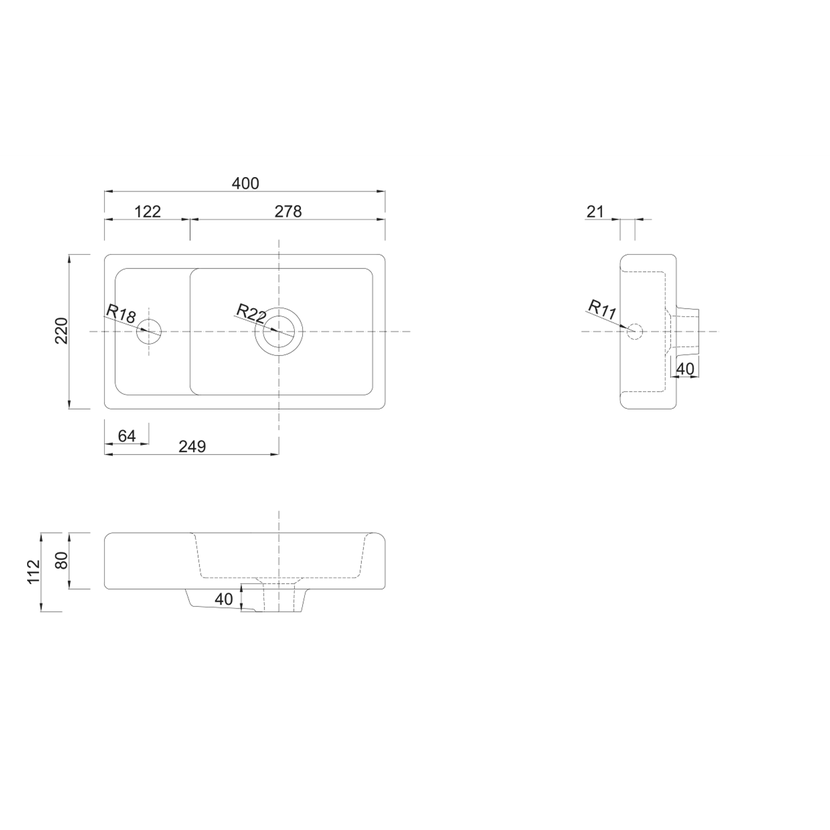 Parametry produktu  ZOJA skříňka s keramickým umyvadlem 40x22 cm, bílá