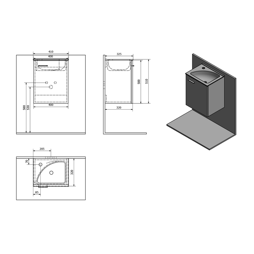 Parametry produktu  ZOJA umyvadlová skříňka 40x50x32cm, 1 dvířka, bílá