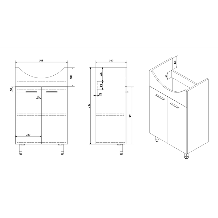 Parametry produktu ZOJA umyvadlová skříňka 50,5x74x30cm, bílá