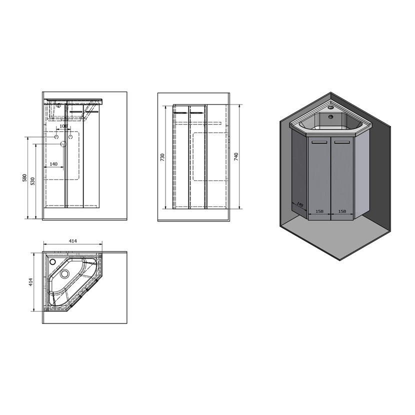 Typ skříňkyRohová