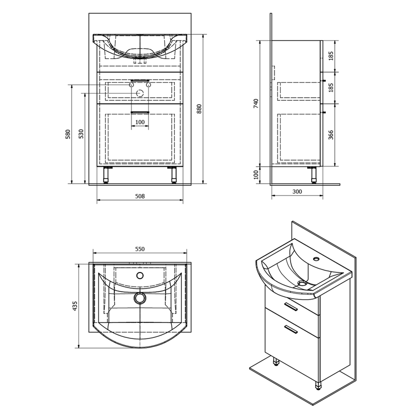 Parametry produktu ZOJA umyvadlová skříňka zásuvková 50,8x74x29,9cm, bílá