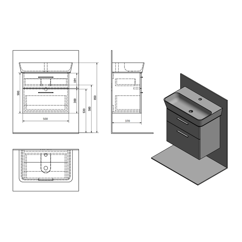 Parametry produktu  ZOJA umyvadlová skříňka šuplíková 50x50x37 cm, bílá