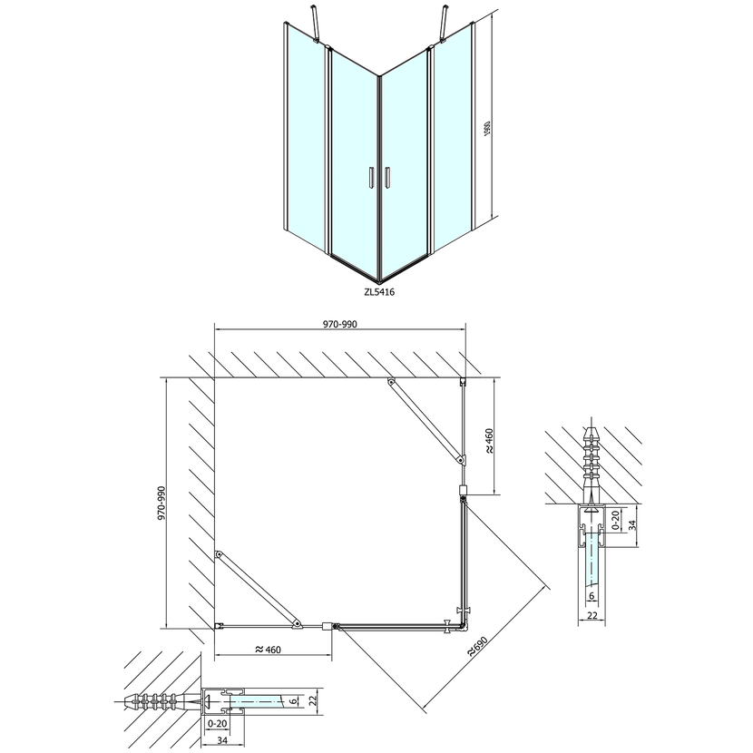 Svěží design sprchových zástěn série ZOOM je propracován do nejmenších detailů. Sprchové dveře s hranatými otočnými profily se zvedacím mechanismem umožňují snadné otevírání vně i dovnitř a zaručují maximální šířku vstupu. Výjimku tvoří čtvrtkruhové zástěny typu ZL2615 (90x90 cm) a ZL2616 (100x100 cm), které se otvírají pouze směrem ven.