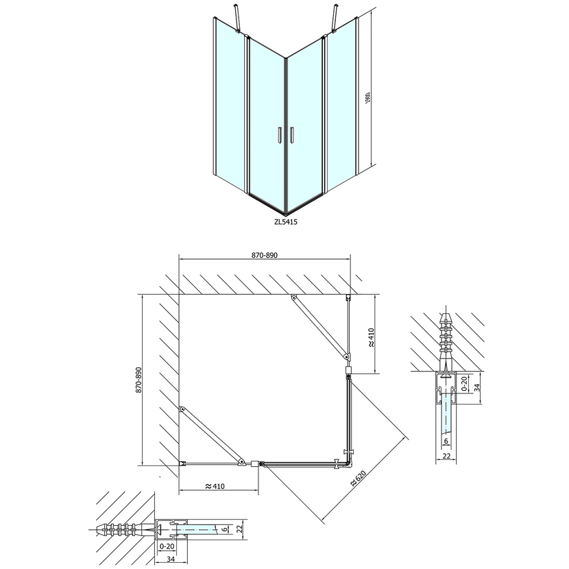 - Dvojkřídlé dveře 800, 900, 1000 a 1200 mm jsou vhodné pouze pro instalaci do niky, nelze je kombinovat s boční stěnou