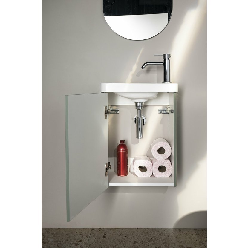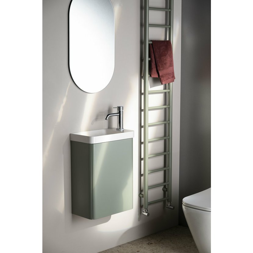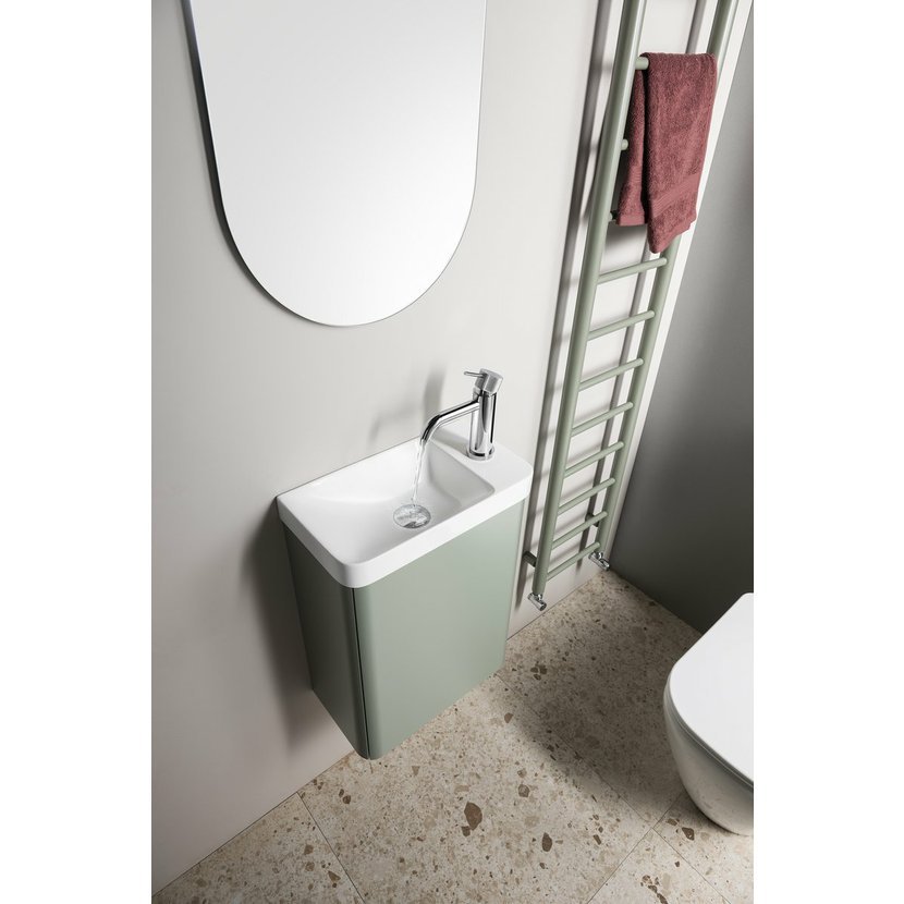 Série koupelnového nábytku ZORBA je navržena pro maximální využití prostoru v menších koupelnách a na toaletách. Skříňka se zaoblenými boky a dvířky zaujme svým designem a zároveň nabízí praktický úložný prostor pro čisticí prostředky nebo toaletní papír. Otevírá se pomocí systému TIP-ON, díky němuž čelní plocha zůstává čistá a elegantní. Ke skříňce lze zvolit umyvadlo z litého mramoru ZORBA nebo kombinaci rockstone desky s kruhovým umývátkem na desku. Široká nabídka barevných dekorů i umývátek umožňuje snadné sladění s interiérem koupelny.