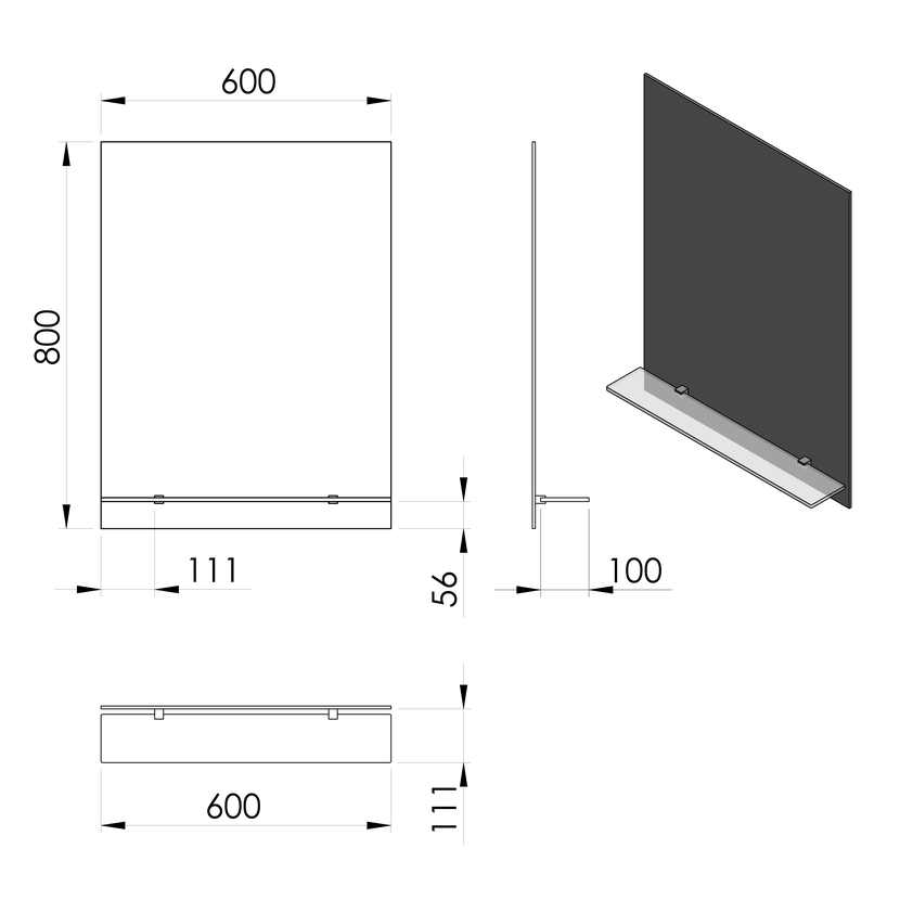Parametry produktu  Zrcadlo s policí 60x80cm, včetně závěsů