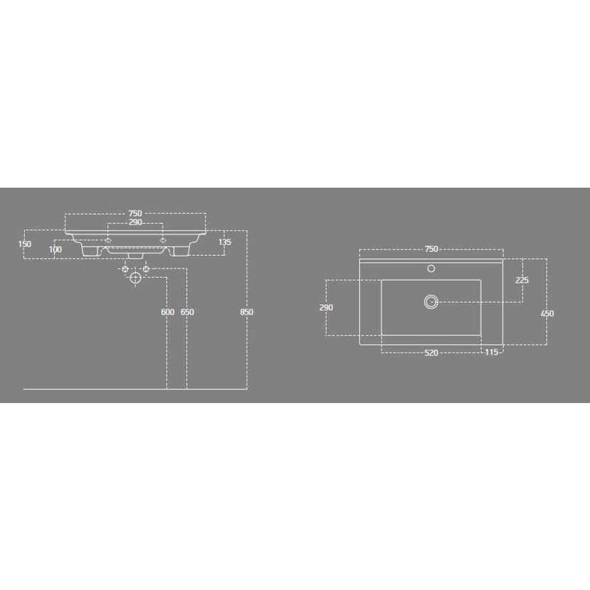 Parametry produktu  ZUNO 75 keramické umyvadlo nábytkové 75x45cm, bílá